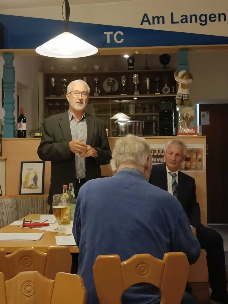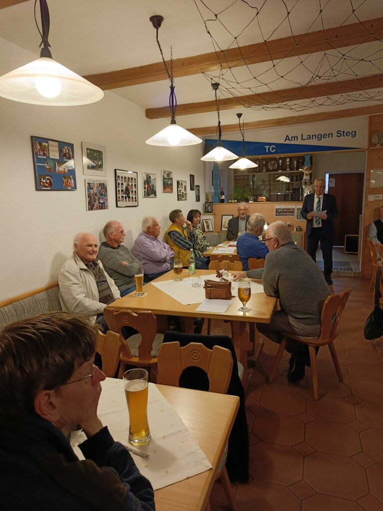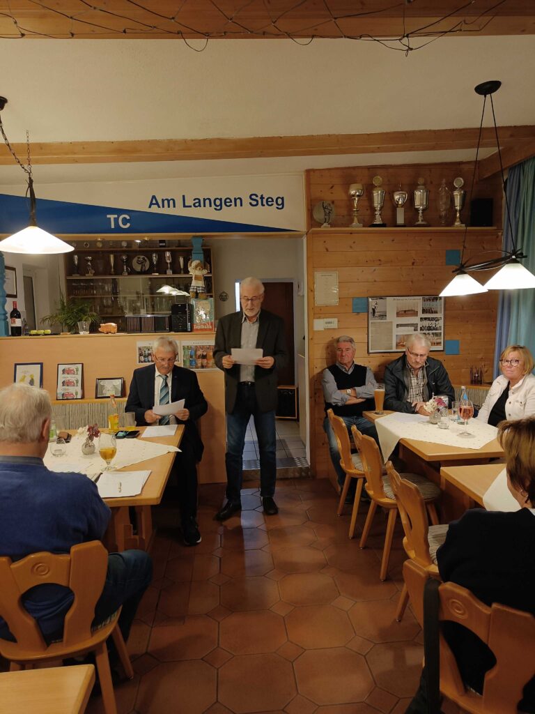Liebe Mitglieder des TC Am Langen Steg e.V., alle zwei Jahre ist laut unserer Satzung eine Jahreshauptversammlung mit Neuwahlen durchzuführen. Diese wurde rechtzeitig angekündigt und am Freitag, 27.09.2024 um 19:00 Uhr im Tennisheim abgehalten. Das Tennisheim war sehr gut gefüllt und die Sitzung konnte pünktlich um 19:00 Uhr beginnen. Unser 1. Vorsitzender Gerd Neumann eröffnete die Sitzung und sprach die Begrüßungsworte. Als erstes begrüßte er die Ehrengäste, Frau Brigitte Schwarz, Stadträtin der SPD, als Vertreterin von OB Jens Meyer und den Präsidenten des Sportverbands für Leibesübungen, Herrn Reinhard Meier. Des weiteren wurde die ordnungsgemäße Einberufung und Beschlussfähigkeit der Mitglieder festgestellt. Eine der positiven Nachrichten des Abends war, dass laut Tagesordnungspunkt kein Totengedenken abzuhalten war. Bericht des 1. Vorsitzenden Bei der letzten Jahreshauptversammlung hatte ich echte Bedenken, ob es möglich sein würde, eine neue Vorstandschaft zu finden. Wider Erwarten wurde die neue Vorstandschaft sogar verjüngt. Spielermäßig, die noch regelmäßig dem Tennissport nachgehen schaut es nicht gut aus; aber gesellschaftlich ist der Zusammenhang immer noch zu erkennen. Die Tennisplätze sind in einem hervorragenden Zustand dank unseres Platzmanagers Marc Badhorn. Ich möchte mich bei der alten Vorstandschaft recht herzlich für ihre Arbeit bedanken und ich hoffe, dass es mit der Neuen genauso harmonisch weitergeht. Bericht des Sportwarts Auch der Bericht des Sportwarts, Daniel Strobl, hatte positive Inhalte. Die neugegründete Herrenmannschaft belegte in ihrer Gruppe einen sensationellen dritten Platz, bei acht Mannschaften. Er hofft auf eine Wiederholung in der nächsten Saison. Die Damenmannschaft hatte eine Spielgemeinschaft mit der DJK Weiden. Wie es bei ihnen nächstes Jahr weitergeht kann noch nicht gesagt werden. Bericht des Schatzmeisters Den Bericht des Schatzmeisters übernahm stellvertretend Manfred Kammerer. Wie ja bekannt, ist unser ehemaliger Schatzmeister Herbert Beierl sehr schwer erkrankt und konnte ab Anfang des Jahres die Geschäfte nicht mehr weiterführen. An dieser Stelle wünschen wir ihm alles erdenklich Gute und Danken für die hervorragende Arbeit in den vergangenen Jahren. Manfred Kammerer berichtete über einen ausgeglichenen Haushalt, sieht aber sorgenvoll in die Zukunft. Aufgrund der allgemeinen wirtschaftlichen Situation ist es sehr schwierig die nächsten Jahre zu bestreiten. Bericht der Kassenprüfer Die Kassenprüfer, Christine Badhorn und Horst Gässler, bescheinigten den Schatzmeistern eine ausgezeichnete und korrekte Arbeit. Als nächstes stand unter Pkt. 9 der Tagesordnung die Neuordnung der Mitgliedsbeiträge zur Debatte. Da diese seit Gründung des Vereins im Jahre 2010 nicht erhöht wurden. Dies hatte eine längere emotionale Diskussion zur Folge. Dabei ging es aber nicht darum ob die Beiträge erhöht werden müssen, sondern um deren Höhe. Letztendlich kam man zu der Einigung (nach Abstimmung), dass die Mitgliedsbeiträge für Vollmitglieder um 30,00 EUR und die Beiträge der passiven Mitglieder um 20,00 EUR erhöht werden.